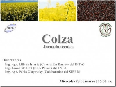 La Bolsa de Cereales de Entre Ríos invita a participar de la Jornada Técnica sobre el cultivo de Colza, la cual se llevará a cabo el próximo miércoles 28 de marzo a partir de las 15,30 horas en nuestra sede sita en calle San Martín 553 de la ciudad de Paraná .