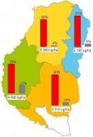 En el Mapa 1 se presente el grado de avance y el rendimiento promedio obtenido al día de la fecha en los cuatro sectores geográficos de la provincia.