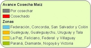 Los maíces de 1era y tardíos abarcan un área de 205.930 ha, en base a consultas efectuadas a la Red de Colaboradores se ha estimado que alrededor del 8% sería destinado a consumo animal, ya sea como silo planta entera o grano húmedo. Por lo tanto el 92% restante, que representan cerca de 190.000 ha se cosecharían para comercializar o bien para consumo como grano seco.