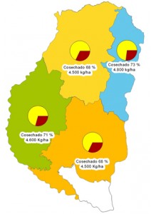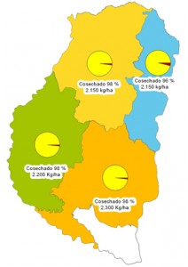 En el Mapa 1 se presentan los avances y rindes promedios por zonas.