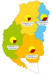 En el Mapa 2 se presentan los avances y rindes promedios por zonas.