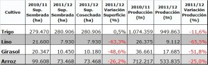 El siguiente cuadro compara los datos estadísticos finales de trigo, lino, girasol y arroz de las dos últimas campañas agrícolas en Entre Ríos.