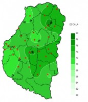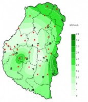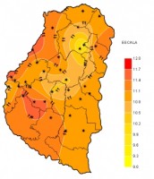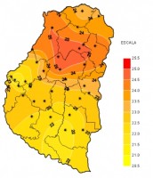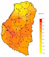 La última semana presentó dos comportamientos muy diferenciados en cuanto al registro de las temperaturas. Durante los primeros cinco días de la misma las marcas térmicas se mantuvieron muy similares a la semana previa pero, en las ultimas 48 horas, el ingreso de una masa de aire muy frío proveniente del sur de nuestro país provocó un repentino descenso, tanto de las máximas como de las mínimas que llegaron a valores bajo cero produciendo heladas de variada intensidad. Debido a que el abrupto cambio en las temperaturas se produjo en los últimos dos días del periodo analizado el mismo no se refleja mas claramente en los mapas actuales, pero esta situación cambiará en los de la próxima semana ya que las bajas temperaturas se mantendrán a lo largo de los próximos días.