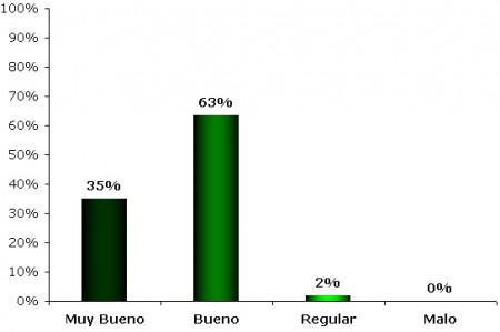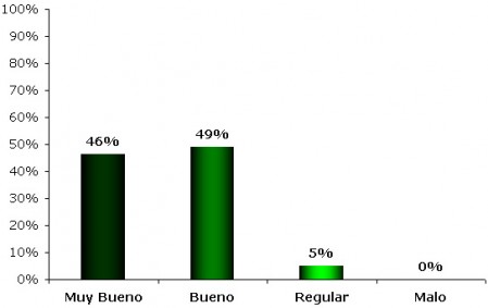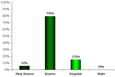 El resultado de la encuesta realizada a los Colaboradores indica que el 85% del área se encuentra con una condición buena a muy buena y el 15% restante como regular, ver Gráfico 4.