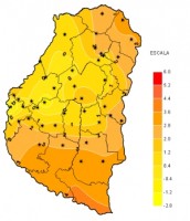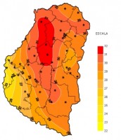 En los últimos siete días las temperaturas se adecuaron un poco más a las típicas de finales de agosto y, especialmente las mínimas, fueron considerablemente mas bajas que la semana anterior. Los registros mínimos se mantuvieron dentro de los parámetros históricos normales y, en promedio, oscilaron entre 1 y 3ºC con un valor extremo de 1ºC bajo cero medido en la estación automática de Crucecita 7ma. Las marcas máximas por el contrario no fueron muy diferentes de las registradas durante el periodo anterior, en general, entre 28 y 30ºC y un valor extremo de 31,6ºC en la localidad de Mojones Sur.