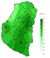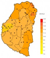 En el mapa se aprecian franjas con registros inferiores a 10 mm, pero otras donde los mismos treparon casi hasta los 20 mm, siendo muy reducidas las zonas donde esta marca fue superada.