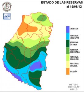 Las reservas de humedad son óptimas a excesivas en gran parte de la provincia. La zona triguera principal de Entre Ríos presenta condiciones muy holgadas de humedad y por lo tanto el agua no será limitante al acercarnos al período donde el trigo comienza a demandar agua.