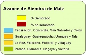 El avance en la siempra de maíz por zonas se presenta en el Mapa 3.