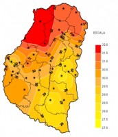 Septiembre arrancó con un nuevo incremento de las temperaturas mínimas, que incluso las ubicó en marcas por encima de las habituales en esta época del año. En promedio los valores registrados por las estaciones automáticas de la red SIBER oscilaron entre 7ºC y 9ºC y en ningún caso fueron inferiores a los 6,8ºC medidos en la localidad de Villa Manteros. Las temperaturas máximas, al igual que la semana previa, no mostraron el mismo ascenso porcentual y fueron bastante homogéneas en toda la provincia, siempre en torno a los 29ºC, con un valor extremo de 32ºC registrado en tres localidades, Hernandarias, Mojones Norte y San Gustavo.
