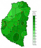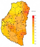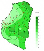 En  el resumen de los acumulados pluviales que se grafica en el mapa, se destacan zonas en los departamentos del sur donde se han superado los 40 milímetros, valores muy importantes para comienzos de mes.