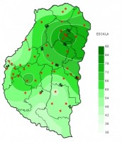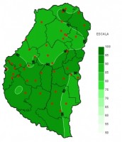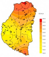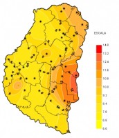 En el mapa se representan las lluvias acumuladas en la última semana. Hemos modificado la escala para que puedan identificarse con mayor claridad los sectores que perforaron el máximo habitual de la escala (200 mm). Del centro para el sur las lluvias tuvieron un piso en los 100 mm. Es decir, en el resumen pluvial de este último período húmedo este sector de la provincia acumuló las lluvias normales del mes. Al desplazarnos hacia el norte, las lluvias ganan volumen y se aprecia con claridad una franja que contiene registros superiores a los 200 mm, con máximos significativos en el sur de La Paz e inusuales en el departamento Concordia.