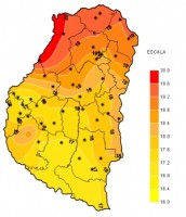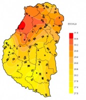 Durante la última semana prácticamente no hubo cambios de relevancia en las temperaturas sobre la provincia de Entre Ríos. Si bien el ingreso de un frente frío provocó, además de intensas precipitaciones, descensos temporales de las marcas térmicas, en general, las mismas se mantuvieron similares a las registradas el periodo anterior. Las máximas oscilaron entre los 28 y 30°C, valores normales para el mes de octubre. Por el contrario las temperaturas mínimas, si bien registraron un leve ascenso respecto de la semana anterior, estuvieron entre 8 y 10ºC, marcas que pueden considerarse inferiores a las normales para esta época del año.