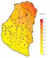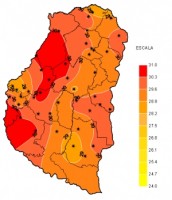 En los últimos siete días la marcha de las temperaturas mantuvo el mismo ritmo que durante la semana anterior. Prácticamente no hubo diferencias significativas en cuanto a los valores máximos y mínimos y la única variación fue en la distribución territorial de las marcas medidas por la Red Automática. Los valores mínimos oscilaron entre los 8 y 10ºC y los máximos, en promedio, se ubicaron entre los 28 y los 30°C. La única variación apreciable se dio en la temperatura media diaria que, a raíz de los desmejoramientos temporales, se mantuvo en torno a los 17ºC, valor por debajo de la media normal para el mes de octubre.