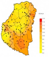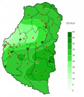 Nuevamente el último fin de semana se vio afectado por lluvias y tormentas de significativos acumulados prácticamente en la totalidad del territorio Entrerriano. El alto contenido de humedad en las capas bajas de la atmósfera y los continuos cambios de circulación mantuvieron, por tercera semana consecutiva, los valores de humedad relativa ambiente promedio por encima del 75%. Si bien las condiciones de inestabilidad ocuparon gran parte del periodo analizado la presencia de las precipitaciones en horas de la noche permitió que la Tasa de Radiación Solar media registrada no se viera tan afectada y mantuviera valores bastante cercanos a los normales para la época. Tal como viene ocurriendo las horas de Mojado Foliar acumuladas se vieron incrementadas por las precipitaciones, pero en ningún caso llegaron a valores excesivamente elevados.