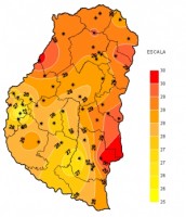 Las condiciones de inestabilidad presentes durante la última semana y el constante cambio en la circulación de los vientos mantuvieron las marcas térmicas dentro de los parámetros normales para el mes en curso. Solo en algunos casos las temperaturas mínimas estuvieron levemente por debajo de los valores típicos de la estación. Las temperaturas máximas se mantuvieron bastante homogéneas, dentro de toda la provincia, entre 27 y 29°C. Las mínimas mantuvieron un promedio casi general de 10ºC. El valor mas bajo medido por la red automática fue de 8.4ºC y se registró en tres localidades, Macia, Victoria y Los Pajonales.