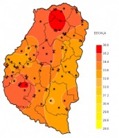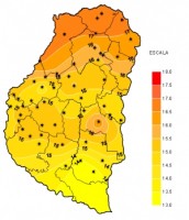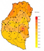 A pocos días del inicio del verano las temperaturas durante la última semana han presentado un leve retroceso respecto de las del período previo. Los registros máximos, en la totalidad de los puntos de medición, han disminuido casi tres grados ubicándose entre los 32ºC y 34ºC, El valor mal alto fue de 35,8ºC y se midió en la localidad de Montoya. La disminución no alcanzó a las temperaturas mínimas que se mantuvieron estables y muy similares a las registradas anteriormente alrededor de los 14ºC. Esta amplitud térmica dio como resultado una temperatura media semanal, muy acorde a la época, de aproximadamente 23ºC.