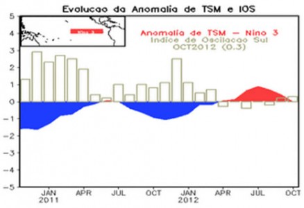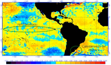 El debilitamiento de «EL NIÑO», su posterior desaparición, que se muestra en el Gráfico 2 no fueron responsables de la continuidad de lluvias en el período antes citado, hoy la explicación debe buscarse en la situación que tiene el Atlántico Sur que favorece el ingreso de humedad en niveles altos de la atmósfera y que hace que cada vez que entre un frente frío se generen interesantes lluvias, en el momento en que se amortigüe este efecto volveremos a una situación “mas normal”.