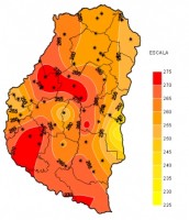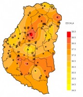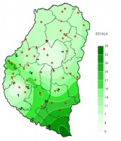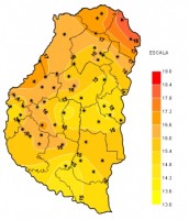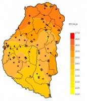 El solsticio de verano se hizo notar y el inicio de la nueva estación llegó acompañado de marcas térmicas muy altas asociadas con una elevadísima sensación térmica, fundamentalmente el día de nochebuena. Las temperaturas máximas a lo largo de la semana fueron superiores a las medidas la semana anterior y se mantuvieron entre los 36 y 37°C, con un valor extremo de 38,8ºC registrado en la localidad Mojones Norte. En cuanto a las temperaturas mínimas, durante todo el período las mismas fueron muy elevadas, pero hacia el final del mismo se produjo un significativo descenso al llegar las lluvias. Por este motivo, los valores más bajos de la semana se mantuvieron en un promedio entre 15 y 16ºC. El registro más bajo fue de 14,4°C y se midió en las localidades de Macia y Gualeguay.