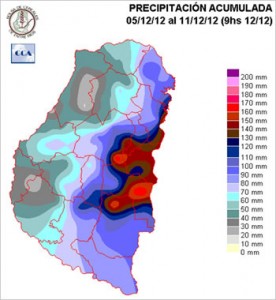 PRECIPITACIÓN ACUMULADA DEL 19 AL 25 DE DICIEMBRE DEL 2012