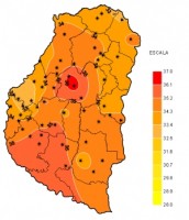 El 2013 se inició con una amplitud térmica que es necesario retroceder una década para poder comparar. Si bien durante el periodo las temperaturas máximas se mantuvieron muy altas, entre 33 y 35ºC, el ingreso de una masa de aire frío, precisamente al comenzar el año, provocó un brusco descenso de las marcas mínimas que en promedio disminuyeron mas de 5ºC respecto de las de la semana anterior y se ubicaron entre los 10 y los 12ºC, con un valor extremo de solo 9ºC en la localidad de San Gustavo.