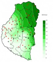 El mapa que representa las lluvias hasta las 9 hs de ayer, se vincula precisamente con el pasaje frontal, el cual comenzando el año se tradujo en un marcado cambio de masa de aire y un fuerte descenso de las marcas térmicas asentadas en las jornadas previas. Algunas celdas de tormenta aparecieron en localidades del departamento Paraná, aunque la actividad más importante se concentró en el este del departamento Uruguay, donde los acumulados se asimilaron a lo sucedido hasta el 20 de diciembre. Sin embargo, como muestra el mapa, esta conducta no fue generalizada. Sobre el norte de la provincia las lluvias ganaron volumen ya que el frente encontró una posición estacionaria y el movimiento más lento hacia el norte permitió que se concreten precipitaciones superiores a los 20 milímetros.