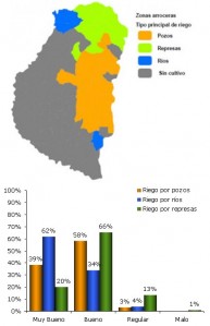 El Mapa 2 muestra las zonas en que se divide la provincia de acuerdo al método utilizado para riego y Los resultados detallados por zonas se pueden observar en el Gráfico 5.