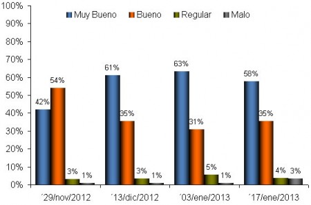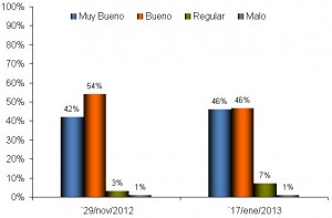 Los datos actuales indican que aproximadamente el 93% de la superficie fue calificada entre las categorías buena a muy buena, existiendo alrededor del 4% en una situación regular y el 3% en estado malo (fundamentalmente lotes afectados por granizo), ver Gráfico 1.