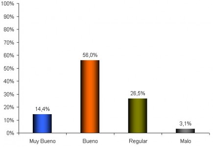 De la encuesta realizada a los Colaboradores se determinó que el 70,4% cuenta con una condición calificada de buena a muy buena, el 26,5% está en una situación regular y existe un 3,1% con una condición mala, ver Gráfico 4.