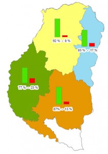 Para graficar lo que estamos señalando mostramos un mapa al 30/1/13 DONDE SE HICIERON BALANCES PARA EL CULTIVO SOJA y puede verse la crítica situación no solo en la Provincia de Entre Ríos, sino en amplios sectores de las Provincias Pampeanas.