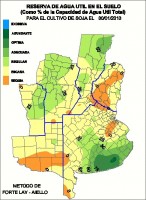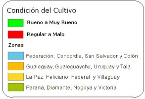 Observar que la Provincia de Entre Ríos se encuentra en situación muy crítica de reservas de agua en el suelo para el cultivo soja.
