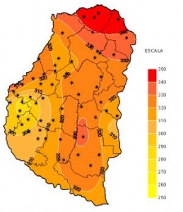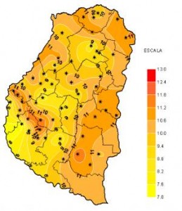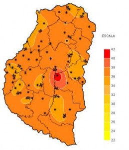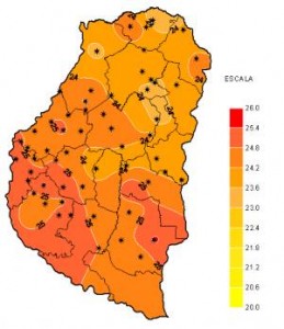 Lo más destacado del período que dejamos atrás fue la gran amplitud térmica registrada por la red automática de medición. Las elevadas temperaturas máximas que, en general, promediaron los 37ºC y en casos puntuales como en Las Moscas, alcanzaron los 41,9ºC; contrastaron con marcas mínimas, que si bien fueron de escasa duración, tuvieron características poco habituales para finales de enero. Las mismas oscilaron entre 9ºC y 11ºC con un valor mínimo de 8,2ºC medido en las localidades de Strobel y Galarza, que podría considerarse más propio de un día soleado de invierno que de uno fresco de verano.