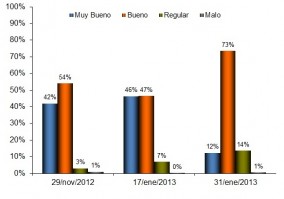 También es interesante destacar que específicamente la condición muy buena decreció desde 42% a 12%, con el consecuente aumento de la condición buena y regular, ver Gráfico 3.