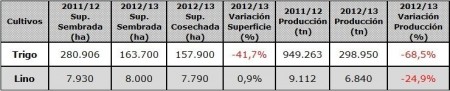 El siguiente cuadro compara los datos estadísticos finales de trigo y lino de las dos últimas campañas agrícolas en Entre Ríos.