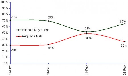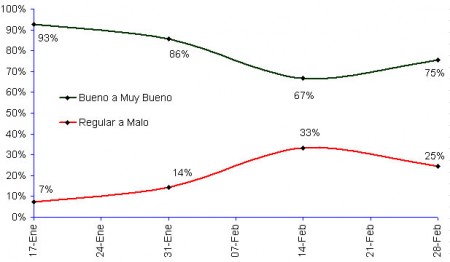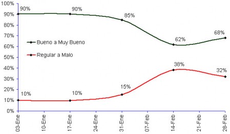 La gradual pérdida de la humedad en el perfil edáfico que se registró en el verano fue deteriorando la condición del cultivo presentándose la peor situación a mediados de febrero donde el 67% del área se encontraba de buena a muy buena, lo cual representó una caída de 26 puntos porcentuales en el transcurso de un mes.