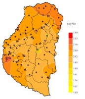 La significativa disminución de las marcas térmicas, producto del ingreso de una masa de aire muy frío y seco, es la característica más destacable de los últimos días del mes de febrero. Las temperaturas máximas descendieron casi 8ºC y se ubicaron en torno a los 30ºC. Las mínimas hicieron lo propio y, en general, se mantuvieron por debajo de las habituales para este mes del año. Los valores medidos por la red automática variaron entre los 9 y los 10ºC, siendo el valor mas bajo el medido en la localidad de Las Moscas, donde se registraron 8,1ºC.