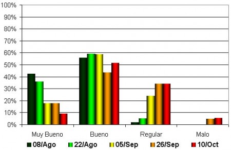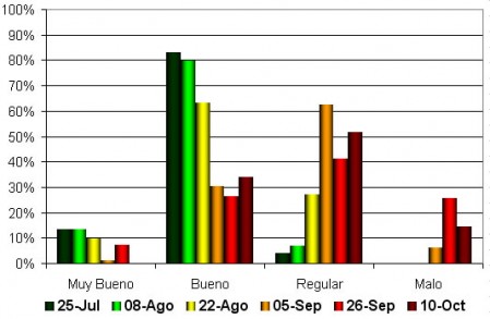 La evolución de la condición general del cultivo está resumida en el Gráfico 1, donde claramente se aprecia dos tendencias bien marcadas.