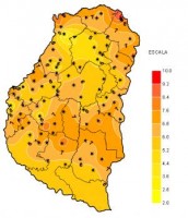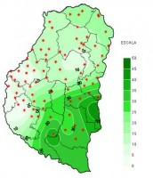 El mapa de lluvias acumuladas hasta las 9 hs de ayer, evidencia este comportamiento, lo cual se refleja en registros básicamente asociados a lloviznas, en general por debajo de los 5 milímetros o en todo caso valores nulos. El corredor entre las localidades de Basavilbaso y Concepción del Uruguay, resultó la única zona que quebró los 10 milímetros.