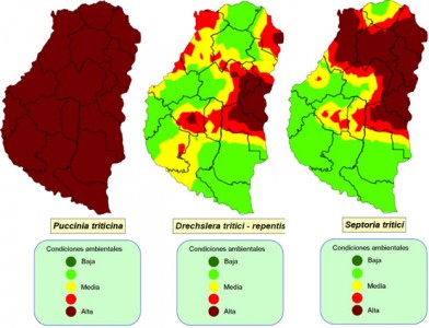 Cabe mencionar que para la confección de los mapas siempre se selecciona dentro del período los días en los cuales las condiciones climáticas son más favorables para el desarrollo de las enfermedades.