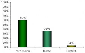 Considerando una superficie cultivada de tan solo 2.400 ha, se estimó que 60% del área posee una condición que ha sido calificada como muy buena, 36% cuenta con una condición buena y alrededor del 4% restante ha sido calificada como regular, ver Gráfico 1.