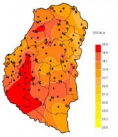 En general, las temperaturas de los últimos siete días se han ubicado por encima de los parámetros estacionales normales. Solo durante los eventos de precipitación las marcas se ajustaron a los valores típicos o incluso levemente por debajo de los mismos debido al ingreso de aire frío que provocó el desmejoramiento climático. Las marcas mínimas promediaron valores entre 14ºC y 16ºC y las máximas, siempre estuvieron por encima de los 33ºC alcanzando registros muy próximos a los 36ºC.