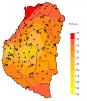 Los acumulados pluviales se resumen en el mapa. Aparece el departamento La Paz, esgrimiendo el máximo de este evento, con lluvias que en gran parte de este departamento superaron los 80 milímetros. Esta actividad se fue diluyendo hacia el este donde los milímetros fueron sustancialmente más modestos. Sobre el sur se aprecian corredores extendidos de oeste a este, con máximos en el departamento Diamante y una pobre oferta de agua sobre el extremo sudeste de la provincia. Este último sector ha sido a lo largo del mes el menos provisto, no obstante ha logrado las lluvias normales del mes. Claro está, al comparar ésta zona con el resto de la provincia, la misma queda muy relegada, recordando que en vastos sectores del norte se han acumulado precipitaciones que superaron los 300 milímetros. El contexto pluvial con que cierra noviembre es más que auspicioso en su resumen. Ahora ingresamos en un período cálido y seco que puede proyectarse hasta el jueves próximo.