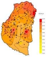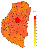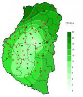 Dentro de éste, se dieron períodos de inestabilidad que favorecieron la aparición de chaparrones dispersos básicamente en corredores donde confluyen los departamentos Paraná y Diamante y en zonas de Gualeguaychú y Uruguay. Esto fundamentalmente se observó entre el jueves y viernes de la semana pasada, luego prevalecieron las condiciones de inestabilidad sin que se observe un retroceso de la exigente condición ambiental dominante. Hacia la tarde noche del lunes la actividad se fortaleció en el noroeste provincial y desde allí las tormentas se desplegaron a otros departamentos del territorio entrerriano. Las lluvias que se sumaron hasta el miércoles a las 9 hs se representan en el mapa. En el mismo se destacan los acumulados más generosos en zonas del departamento La Paz y áreas reducidas en los departamentos Paraná y Diamante. También en Gualeguaychú y Uruguay las lluvias se ubicaron por encima de los 40 mm. En otros sectores del territorio entrerriano las lluvias acumuladas fueron pobres y no bastaron para compensar el trajín de gran parte del mes de diciembre.