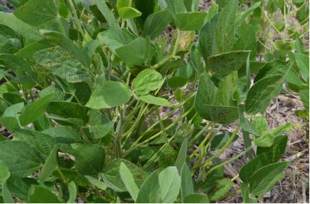 Los cultivos de soja sembrados muy temprano (los que son muy escasos), se hallan en el estado fenológico R4-R5, con estado sanitario muy bueno. Sólo se detecta en hojas inferiores diversas manchas compatibles con factores abióticos, posiblemente herbicidas.