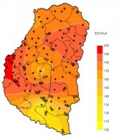 Como se aprecia en el mapa, los acumulados más generosos y homogéneos en su distribución se situaron hacia el noroeste y el norte provincial, donde en general la suma semanal tuvo un piso en los 60 milímetros. La oferta de agua declina rápidamente hacia el sudoeste y el sur de la provincia, donde en muchos sectores durante la última semana solo se concretaron lloviznas. Debemos remarcar que en estas zonas donde ha llovido menos, las coberturas nubosas y la baja insolación igualmente fueron una característica predominante.