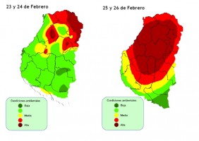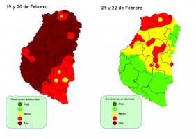 Febrero finaliza tal como comenzó, con precipitaciones de variada intensidad distribuidas a lo largo de todo el territorio provincial aunque, al igual que la semana previa, los mayores acumulados, en general, se concentraron en el sector norte. En esta oportunidad la intermitencia de las lluvias y la disminución de la nubosidad mejoraron levemente la Tasa de Radiación Solar media respecto de los valores que se venían registrando, mientras que el gran contenido de agua en la atmósfera mantuvo elevada, por encima del 80%, la Humedad Relativa ambiente. El valor acumulado de horas de Mojado Foliar continuó alto y si bien las marcas térmicas se vieron levemente moderadas hay que tener en cuenta su incidencia en el estado de los cultivos.