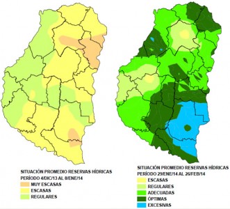 El Gráfico 1 muestra el comportamiento de las reservas hídricas en Entre Ríos desde inicios de noviembre del 2013 hasta finales de febrero del 2014.