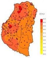Durante los últimos siete días el cambio de circulación atmosférica provocó un importante descenso de las temperaturas mínimas permitiendo que, en algunos casos, los registros apenas superaran los 8ºC y en general se mantuvieran próximos a los 11ºC. Las marcas máximas también registraron una disminución pero en este caso mas leve, motivo por el cual las mismas pueden considerarse dentro del rango normal estacional. Los máximos promedio se mantuvieron en torno a los 29ºC, llegando como valor mas alto a los 32ºC.