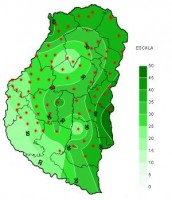 Es posible que al tener en cuenta una pastura como cobertura, se esté subestimando el cálculo de reservas para la oleaginosa, esto debería ser mucho más evidente en los departamentos Gualeguay y Gualeguaychú, donde las lluvias de febrero superaron largamente los valores normales. No podemos decir lo mismo del departamento Diamante, sudeste de Paraná y el noroeste de Nogoyá, donde se ha configurado el mínimo pluvial del segundo mes del año. A esta zona se le suma el centro de Federal y el norte de Concordia, con lluvias de un orden cercano al normal. Estos sitios muestran una cierta señal deficitaria, dado que las lluvias normales no han bastado para suplir el comportamiento que mostró enero, fundamentalmente con las importantes pérdidas por evapotranspiración debido a las altas temperaturas.