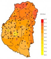 El comportamiento de las marcas térmicas durante la semana de análisis ha sido congruente con los valores propios de final de estación. Las temperaturas se han mantenido templadas y si bien el mapa de temperaturas máximas todavía grafica registros altos cabe destacar que los mismos solo corresponden al primer día del periodo considerado. El indicador mas claro del cambio térmico son las temperaturas medias, que han promediado los 20ºC indicando un desarrollo diario de mañanas frescas y tardes más cálidas.