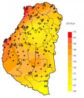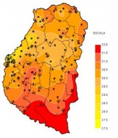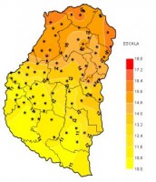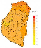 En los últimos siete días las marcas térmicas tuvieron una leve recuperación en ascenso, fundamentalmente debido al ingreso de aire más cálido y húmedo que al mismo tiempo desestabilizo las condiciones atmosféricas. Las temperaturas mínimas prácticamente duplicaron los valores del periodo previo ubicándose entre los 10 y 12ºC. En el caso de los registros máximos la variación no fue tan perceptible en cuanto a los valores absolutos, pues las mismas se mantuvieron cercanas a los 30ºC, pero si en la distribución de ese elevado valor ya que, en este caso, fue mas generalizada a lo largo de todo el territorio provincial.
